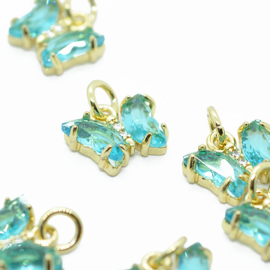 Anhänger Schmetterling Zircon / türkis gold / 12 mm