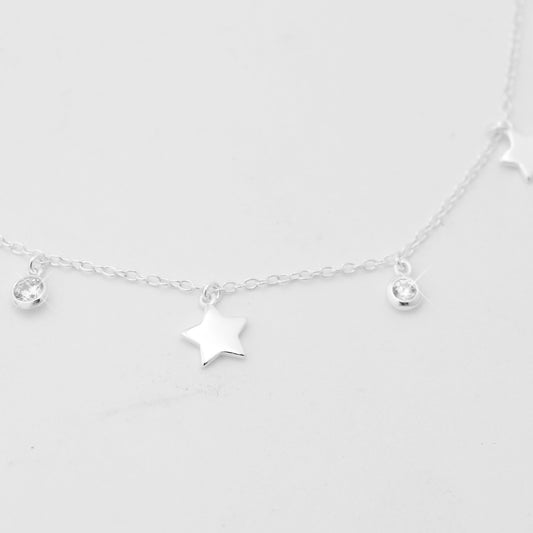 Kette "Zircon & Sterne" / 925er Sterling Silber / 40 + 5 cm