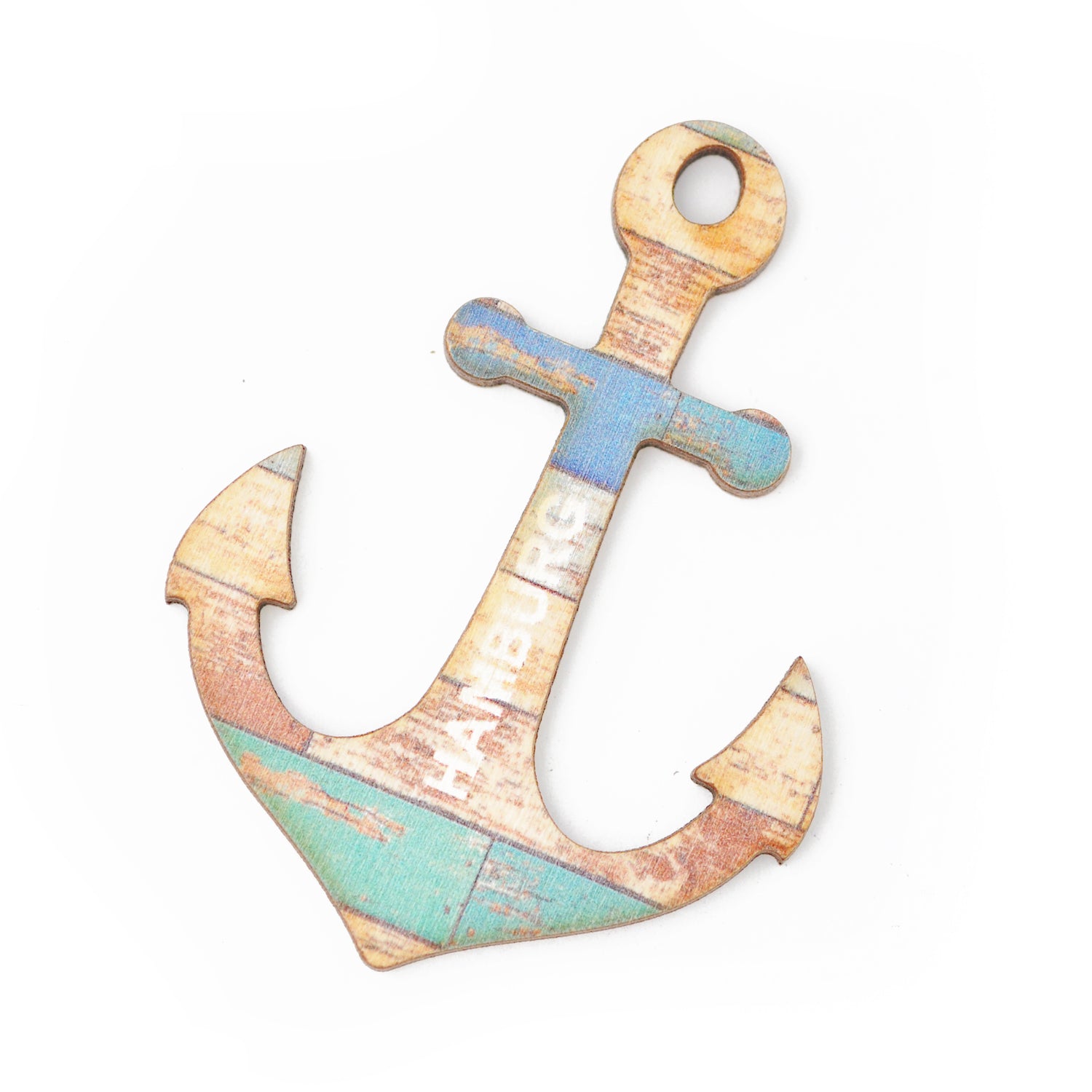Anker aus Holz mit Hamburg-Print.